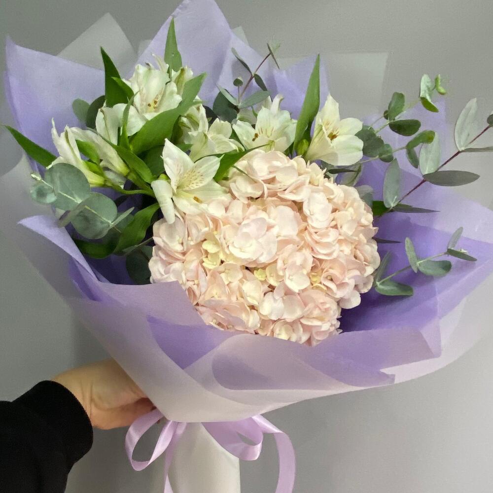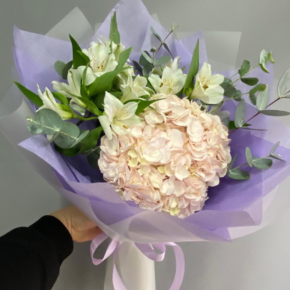 14 февраля 💐 Нежный букет комплимент жене из гортензии с альстромерией в Нарткале